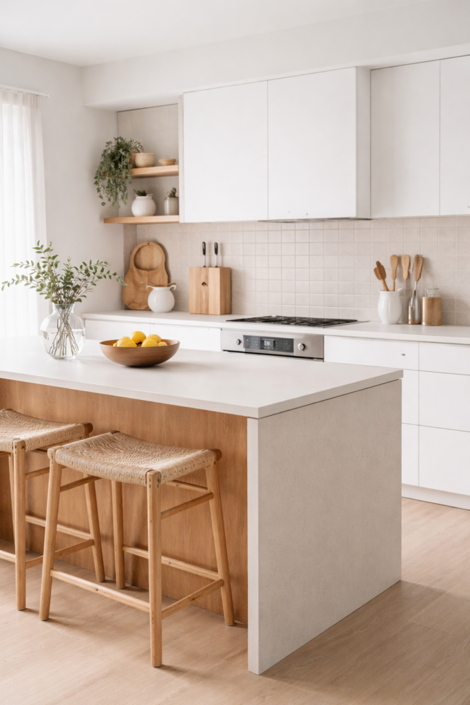 Une cuisine minimaliste n’est pas une cuisine vide ou froide. Au contraire, c’est un espace où chaque objet a été soigneusement sélectionné pour sa beauté fonctionnelle. Les éléments visibles sont ceux qui apportent de la joie ou une utilité quotidienne, créant ainsi un environnement où la préparation des repas devient un plaisir plutôt qu’une corvée dans un espace encombré.